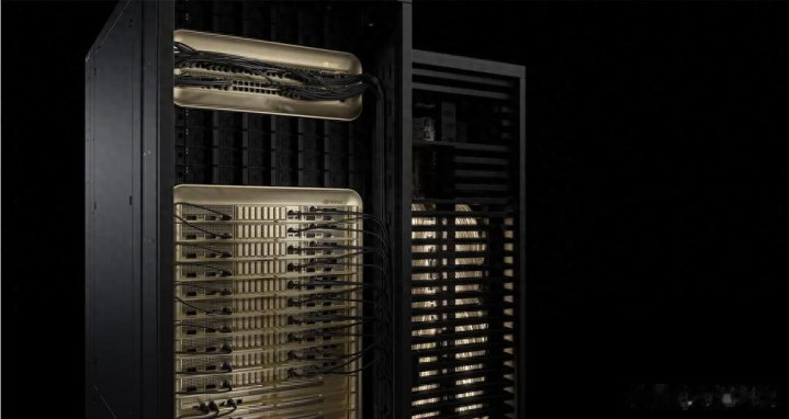 在机架级别,每个NVL72系统据说能够提供1440Petaflops的FP4 Tensor性能,由37TB的统一“快速内存”驱动,这包括20TB的GPU HBM3E和17TB的Grace CPU LPDDR5X。这些内存通过NVLink 5汇集在一起,使每个机架作为一个单一的、统一的加速器工作,能够提供130TB/s的直接带宽。